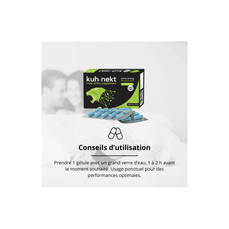 Vous rêvez d’intensifier vos performances sexuelles et d'impressionner votre partenaire ? Les compléments aphrodisiaques Kuh Nekt sont faits pour vous ! Disponibles en boîtes de 4, 10 ou 20 gélules, ces puissants stimulants naturels vous aident à obtenir des érections plus fermes et à prolonger vos moments intimes.